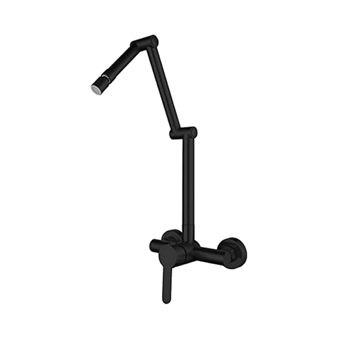 صنبور مطبخ حديث مثبت على الحائط تجاري BBGS أسود غير لامع مع حوض تعبئة بوعاء أرجوحة مزدوج مشترك قابل للتمديد