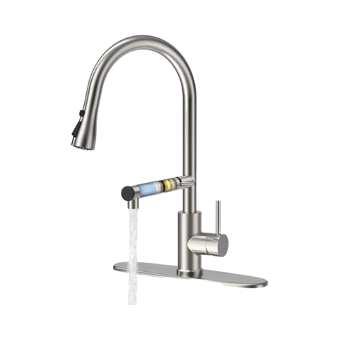 FEELSO High Arc 1 3-Hole Stainless Steel Finish Kitchen Sink Faucet Brushed Nickel Pull Sprayer with Water Filter